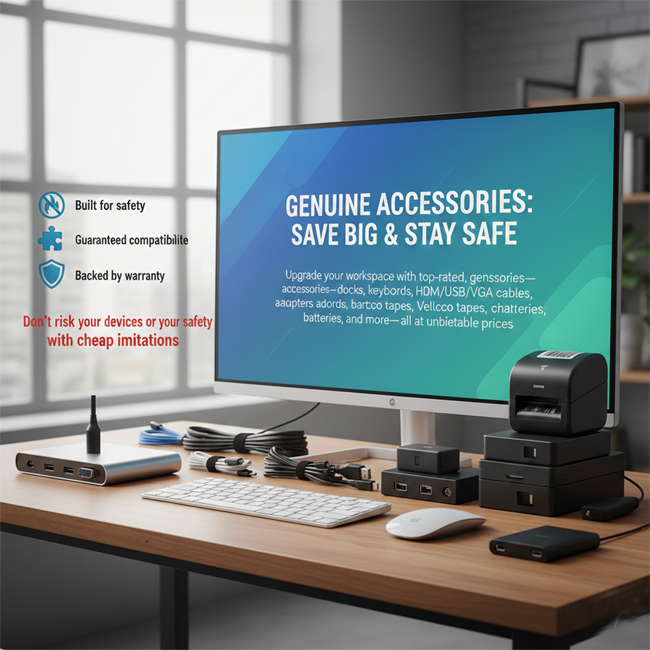 Upgrade your workspace with top-rated, genuine accessories—docks, mice, keyboards, adapters, HDMI/USB/VGA cables, patch cords, Velcro tapes, barcode printers, chargers, batteries, and more—all at unbeatable prices.